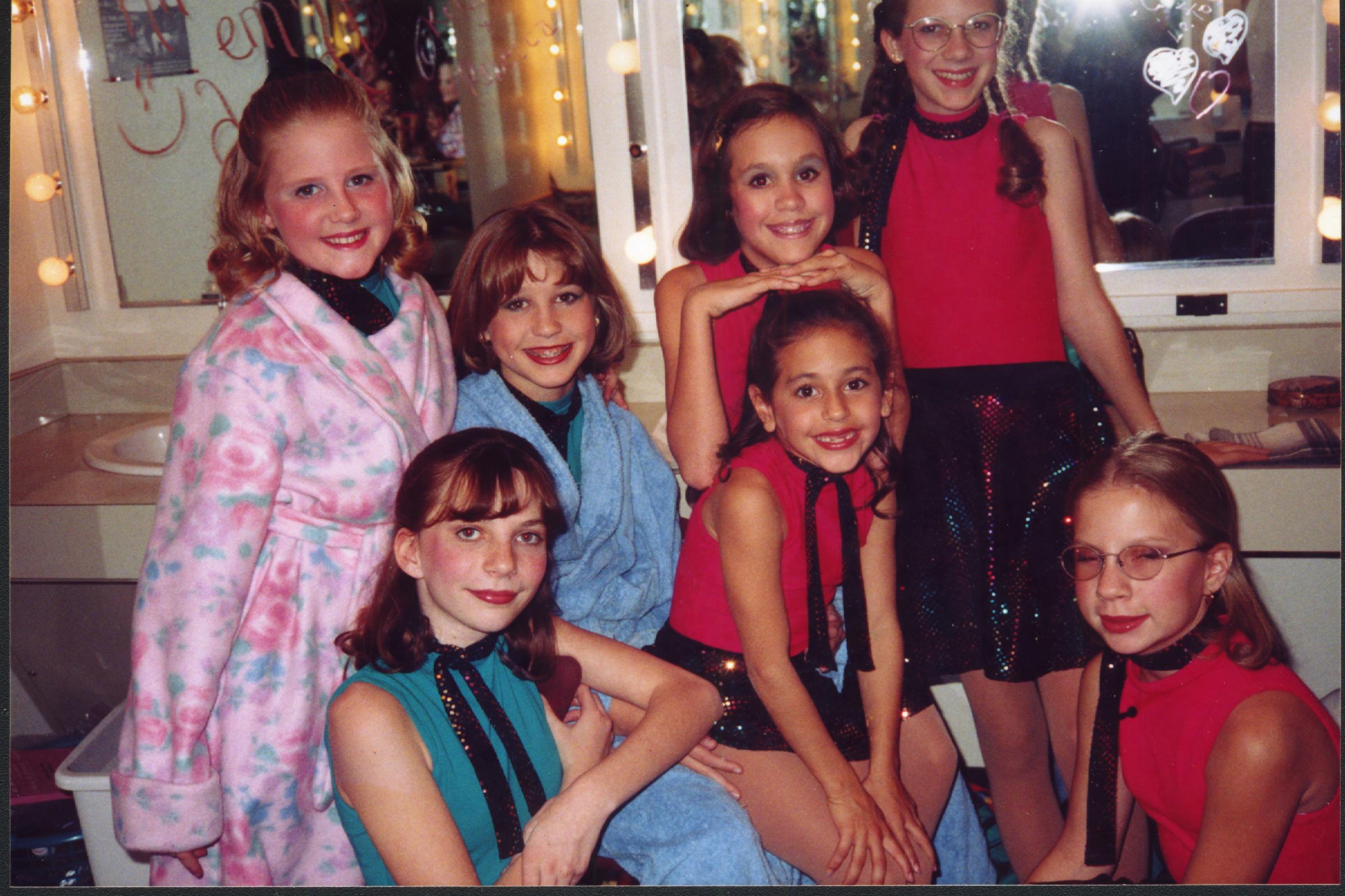 Shayna, Caroline, Kristin, LaTosha, Justine, Kristina, and Katie in the dressing room